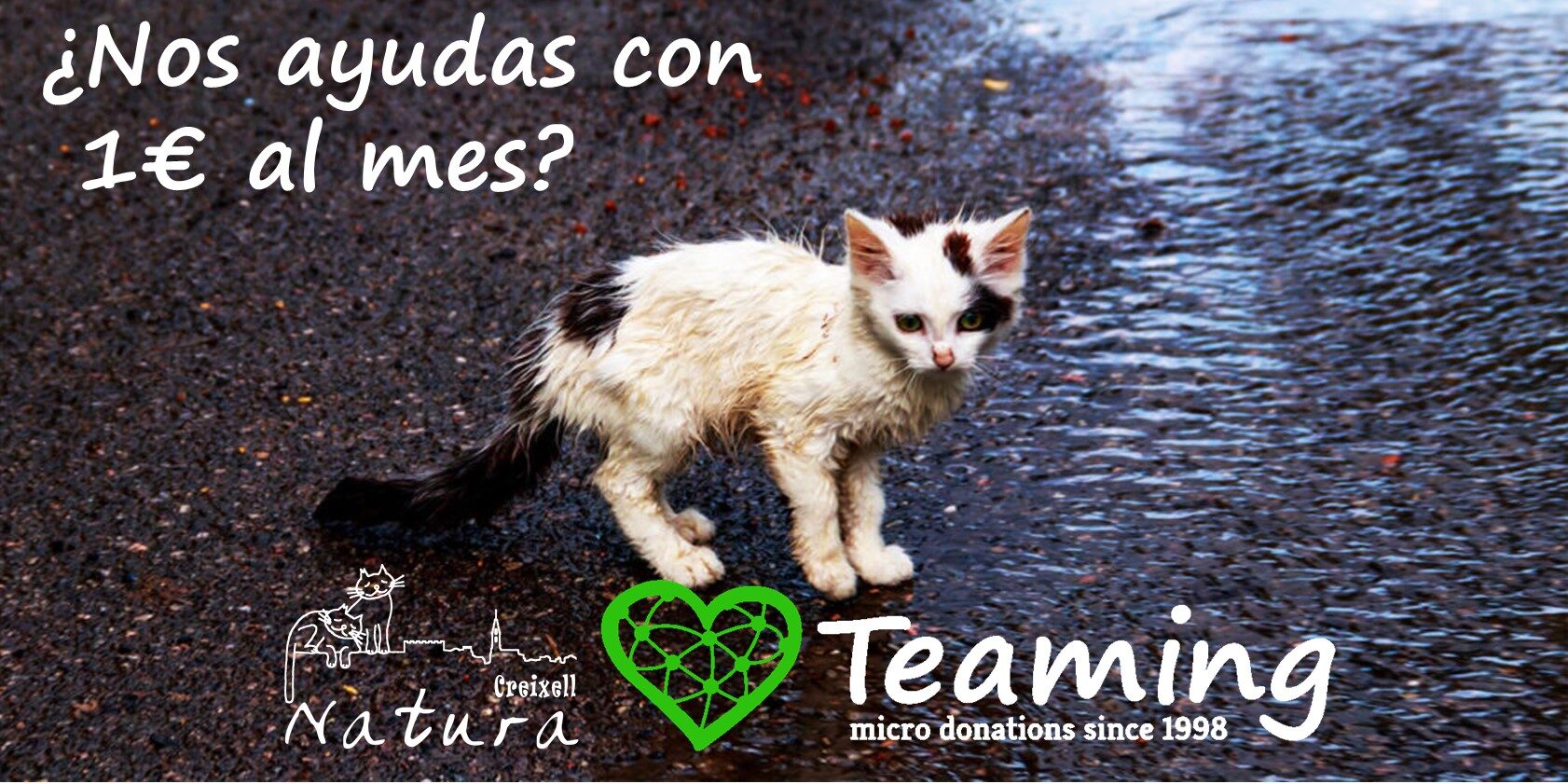 Teaming es una fundación que ha creado una plataforma para recaudar de manera segura y sin comisiones donaciones de 1€. Tenemos un grupo en esta plataforma, por lo tanto, las donaciones que nos hagas a través de esta fundación podrán ser utilizadas para obtener desgravaciones fiscales en la Declaración de la Renta. Si quieres ayudarnos a controlar por medios éticos la población de gatos en Creixell, puedes lograr con este sistema, que el dinero que pagas a Hacienda vaya destinado a esta causa de Creixell. Nuestra asociación utilizará tu donativo para sufragar los gastos veterinarios de esterilizaciones, y evitar así que los gatos se reproduzcan y aumenten en las calles de nuestro pueblo.